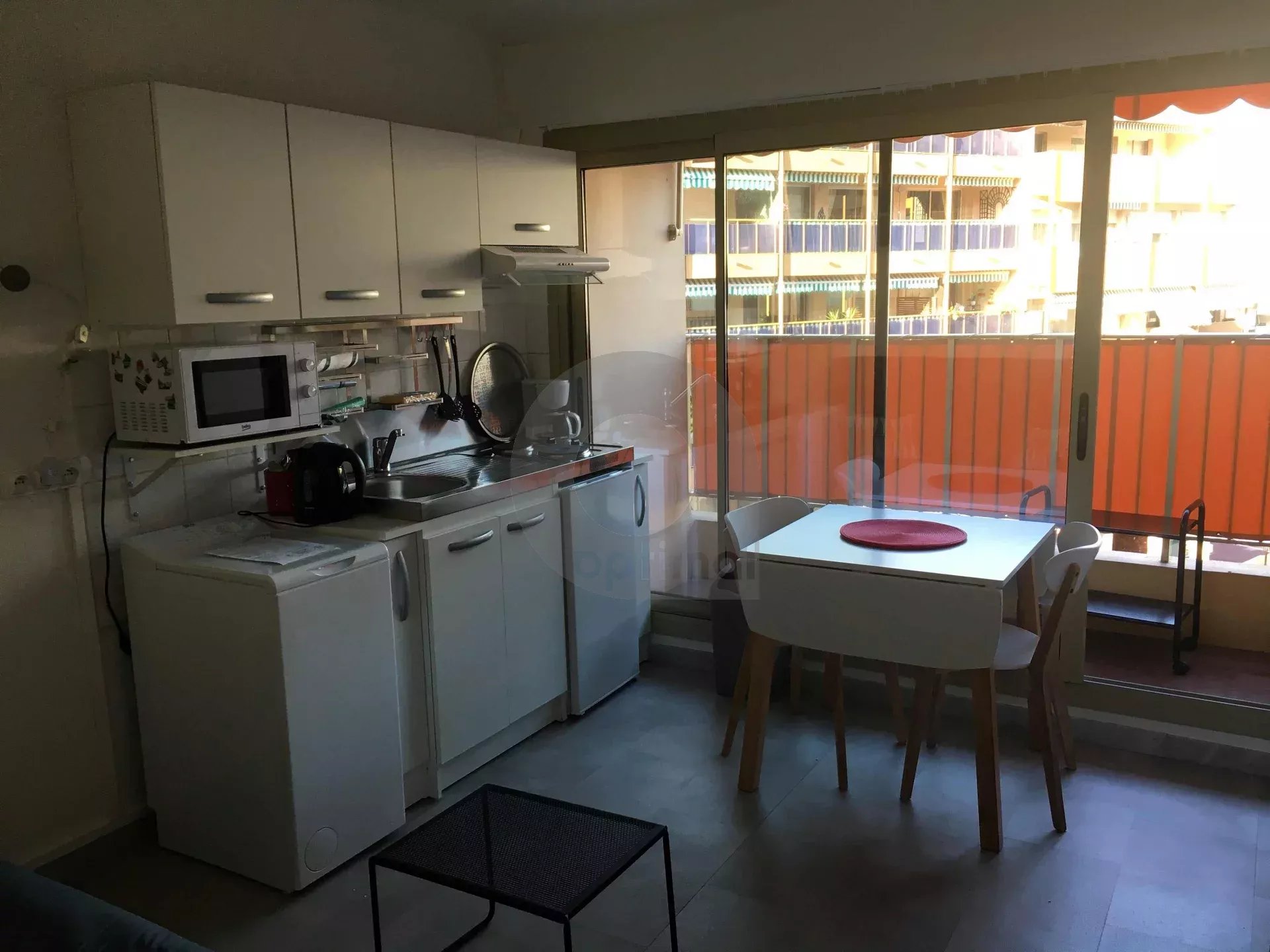 En étage élevé, studio en bon état composé d’une entrée, d’un séjour avec cuisine américaine et d’une salle de douche avec wc.