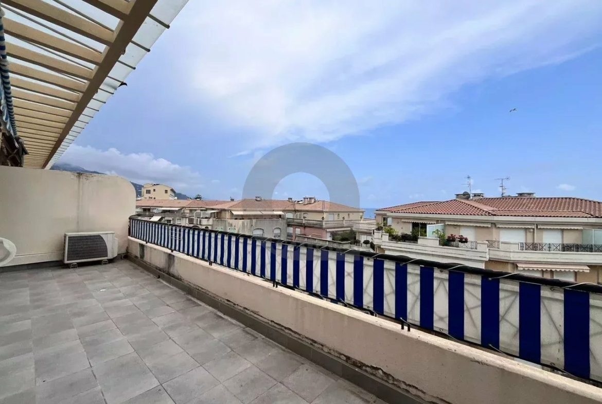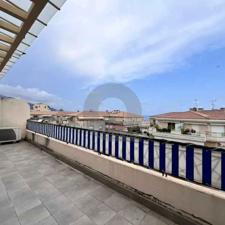 ouvrant sur une belle terrasse profonde exposée SUD/OUEST d’une superficie d’environ 17m², offrant un bel ensoleillement, avec vue mer,