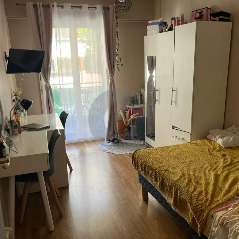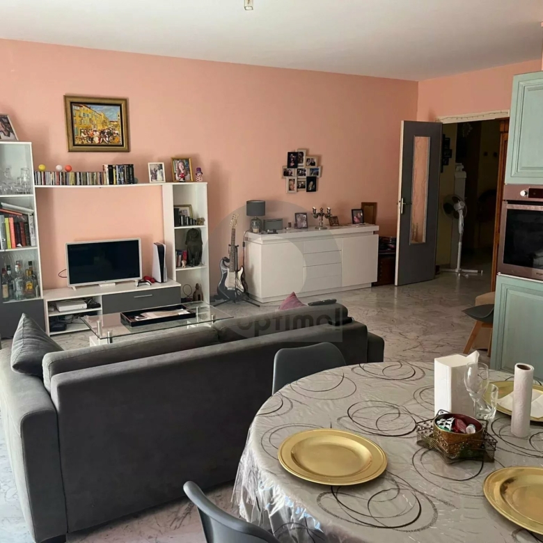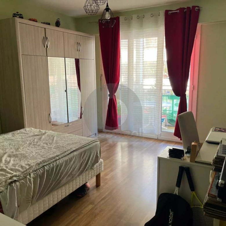En rez-de-chaussée surélevé, grand 3 pièces de 90m2 composé d’une entrée avec placards, d’un séjour avec cuisine américaine équipée, de deux chambres, d’une salle de bains et d’un wc indépendant.