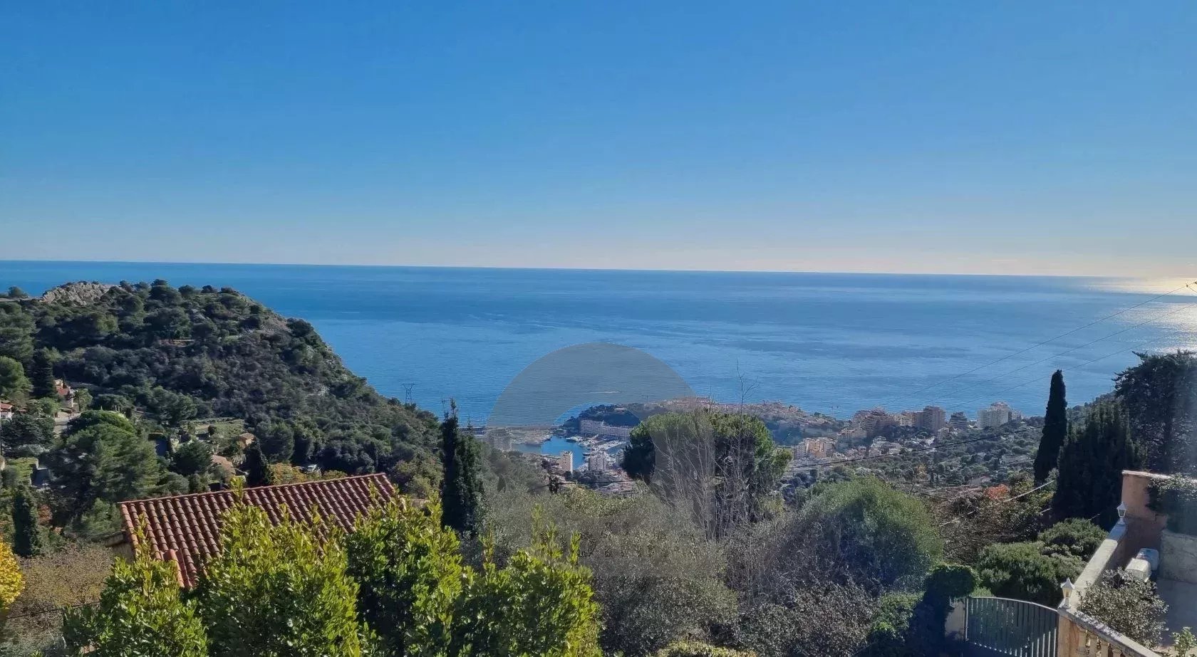 La maison bénéficie d’une vue remarquable sur la mer, le rocher de Monaco, ainsi que sur le Trophée d’Auguste.