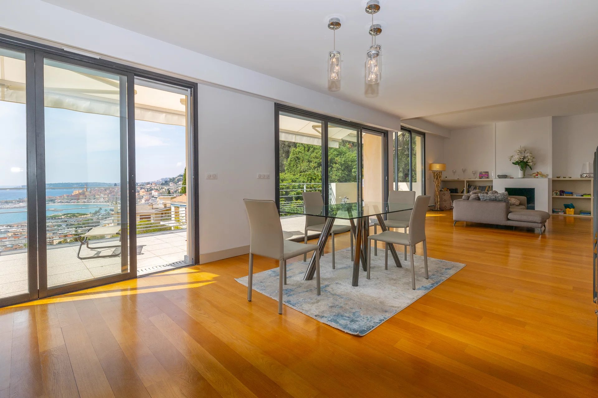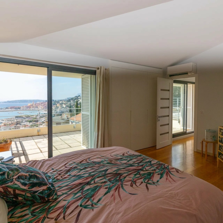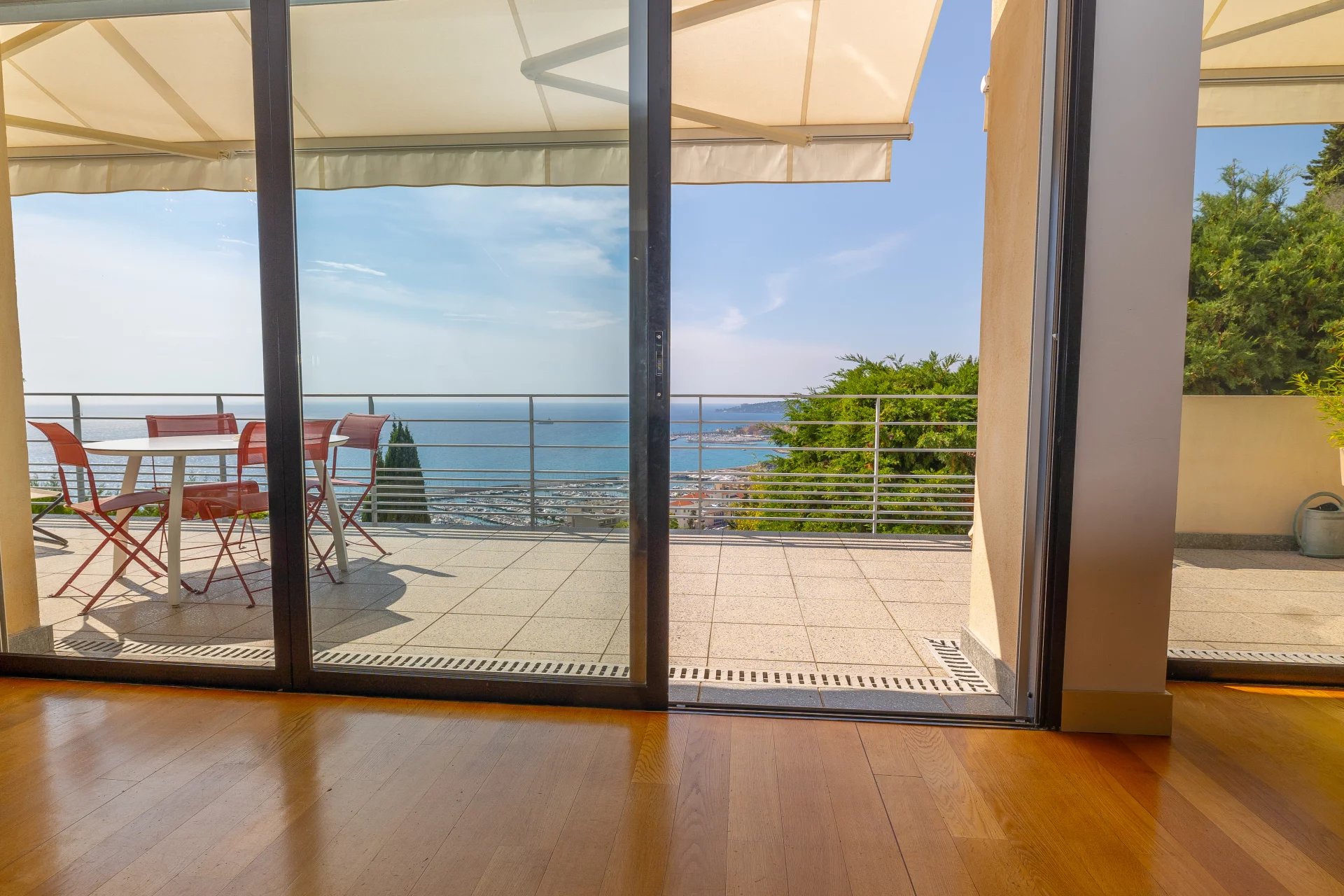 Découvrez cette splendide villa contemporaine de 240 m² offrant une vue panoramique sur la mer à 180 degrés, située dans le prestigieux secteur de Garavan à Menton. Cette propriété exceptionnelle s’étend sur 4 niveaux alliant design moderne et prestations de qualité.