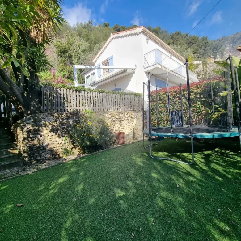 Roquebrune Cap Martin, dans le superbe quartier résidentiel du hameau supérieur, charmante maison d’environ 130 m², sur deux niveaux, composée d’un double séjour, une belle cuisine, trois chambres à coucher, une belle véranda d’environ 20 m², une salle d’eau, une salle de bains, plusieurs wc et disposant de belles terrasses, jardins arborés (avocatier/agrumes/oliviers…), grand parking pour plusieurs voitures et accès direct. Jolie vue mer et montagnes.